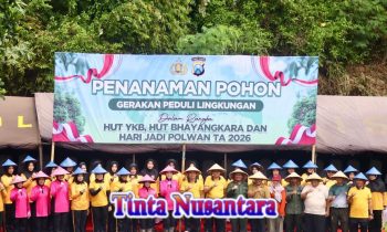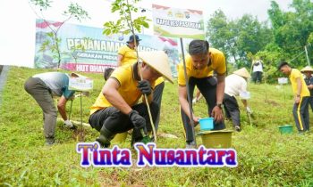 PASURUAN –tintanusantara.co.id – Kapolres Pasuruan AKBP Harto Agung Cahyono bersama Ketua Bhayangkari Cabang Pasuruan dan Forkopimcam Rembang melaksanakan kegiatan penanaman pohon di Waduk Kalisat, Kecamatan Rembang, Kabupaten Pasuruan, Rabu (22/4/2026) pagi.